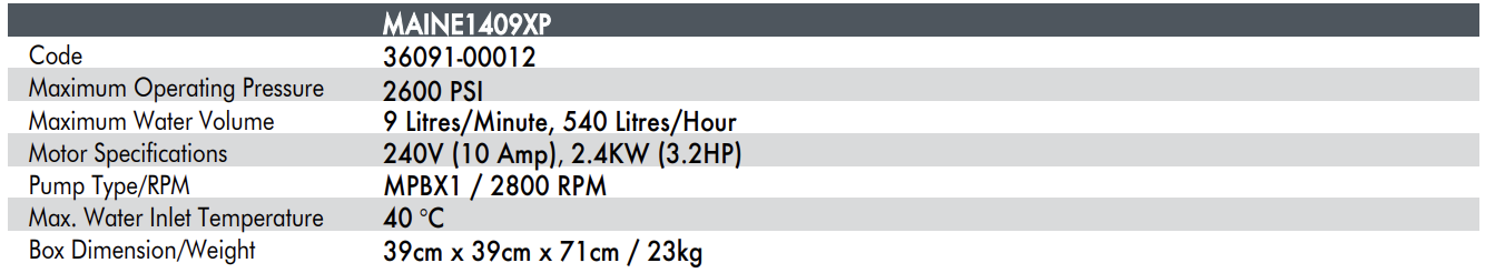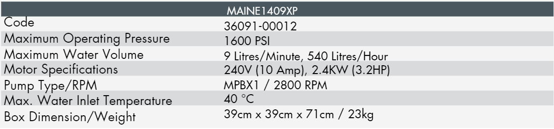 The Maine1409XP has been designed for operators needing more than just a home unit, but are limited to an Australian 240v 10 amp standard power point.