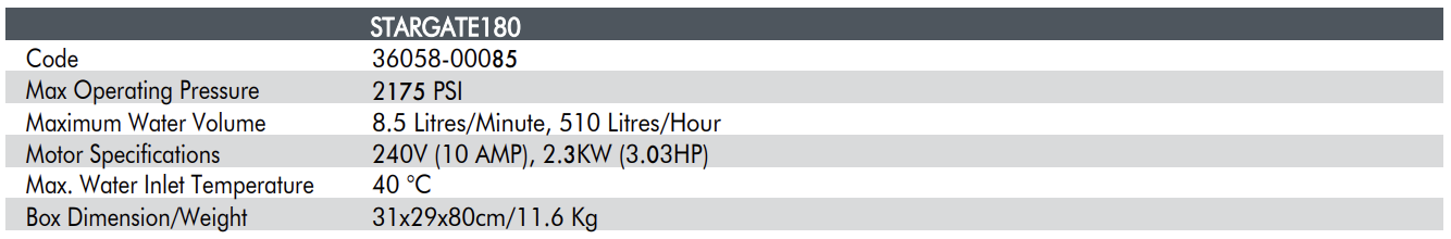 The Lavor STARGATE 180 high-pressure cleaner is a medium-duty, domestic-grade cold water machine. The machine has a 2.4KW universal 240V electric brush motor that offers the home user a domestic-grade machine with plenty of grunt with 8.5LPM at a maximum pump pressure of 2610PSI. Most importantly, the carbon brush universal motor is fitted with a thermal overload. As a result, this protects the motor from damage when used for longer than the suggested continuous use periods. This STARGATE 180 is a great all-around machine suitable for the home/home workshop with many added accessories. Firstly, it has three quick nozzles which include a Vario, Turbo and Detergent Nozzle. The STARGATE 180 pressure washer also has a Patio Cleaner and a drain cleaning hose kit as standard. This makes it ideal for all and any cleaning jobs around the Domestic home environment. In conclusion, the pressure washer comes with a lightweight carbon brush motor, which makes the total weight of this unit easily manoeuvrable for all members of the family.